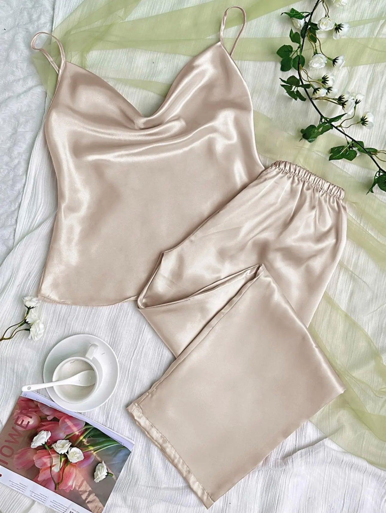 Camisole and pjs in 100% Soft Satin Silk Spaghetti Straps Elastic Waist Long Pant: This PJ long bottom...